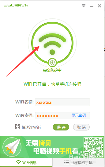 打开360WIFI,可以在快速启动栏、桌面、360软件里找到该图标