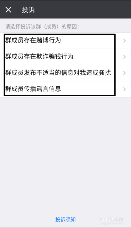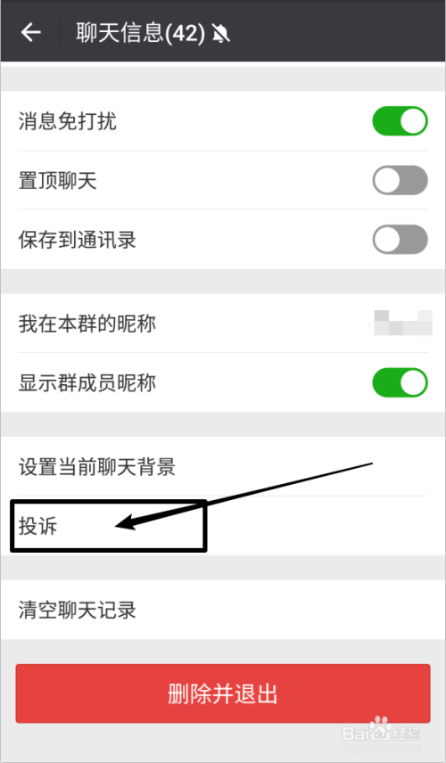 在【聊天信息】往下拉找到【投诉】