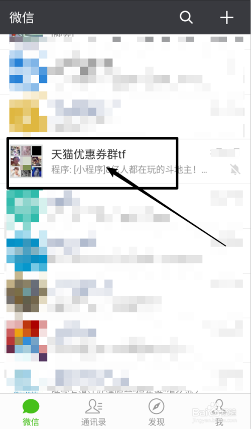 首先点击打开微信,选择一个要举报的群