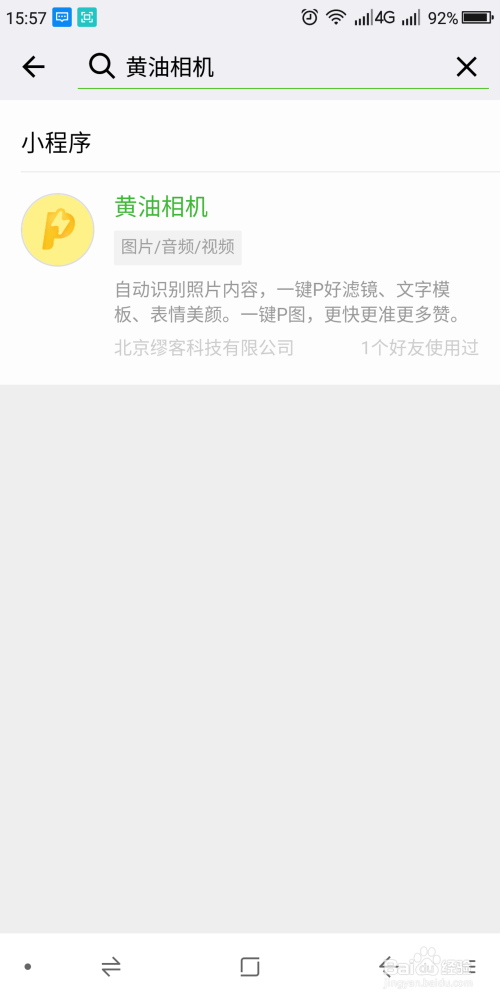 在搜索框输入“黄油相机”,呈现“黄油相机”后点击