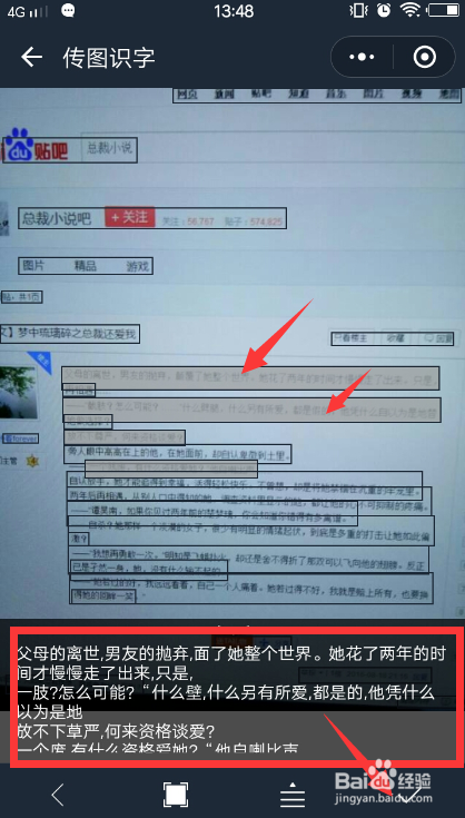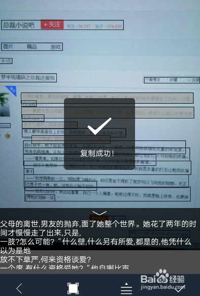 然后要复制哪些文字,只需要点一下,屏幕下方就有呈现选中的文字,选好后,点击右下角的勾。