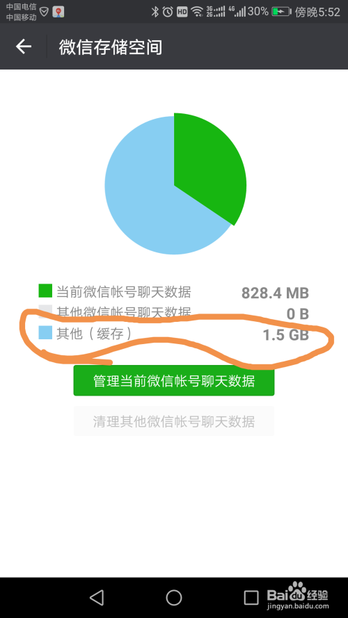 其他缓存很是多,进入办理当前微信账号聊天数据也可以清理,并不平安,可能误删主要资料,并且删除不了其他缓存