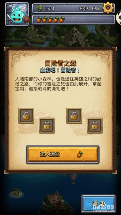 首先就是冒险者之森了,一共有5层,此次介绍第一层的弄法,会有个小NPC来教我们,没什么难度