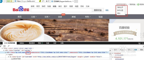 查找到一个“my-info menu-hide”的元素,menu-hide 翻译过来就是埋没菜单,我们只需把hide改为show,即显示菜单的意思。