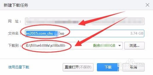 “新建下载使命”对话框中,选择好下载保留的文件夹,就可以下载VS2015了。