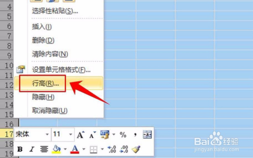 按第一种方式第1步和第2步操作后,点击鼠标右键,在鼠标右键列表中选择【行高】。