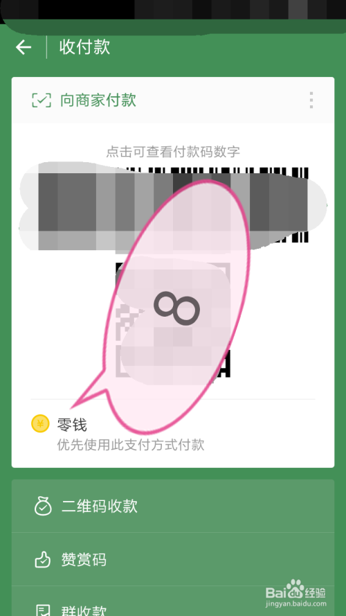 进入“收付条目”页面,点击二维码下方“零钱”,即可选择优先的付出体例