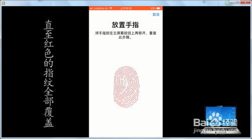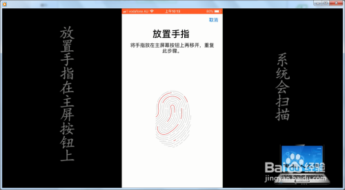 按照提醒放置手指笼盖本家儿屏幕按钮。