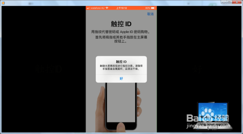 将手笼盖本家儿屏幕上的按钮(不要按下键)触控ID→好。