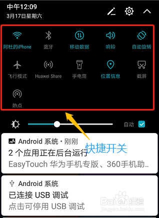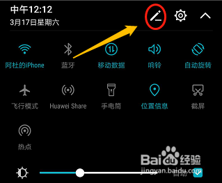 ①手机城市有下拉快捷开关,如图手指往下滑动页面今后,我们可以看到今朝手机的快捷开关列表;