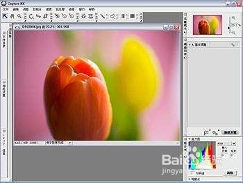 首先,利用 Capture NX 2打开原片,将优化尺度改为“鲜艳”,建议大师摄影时利用NEF格局保留图片,NEF(RAW)格局的特点是数码相机的专用格局,是真正意义上的“电子底片”。