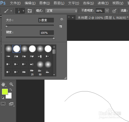 然后新建一层图层,点击画笔东西,选择3像素的硬头画笔