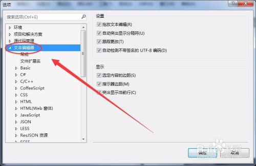 “选项”对话框中,单击“文本编纂器”。