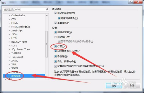 单击“所有说话”项,选中“行号”选项,如下图所示。