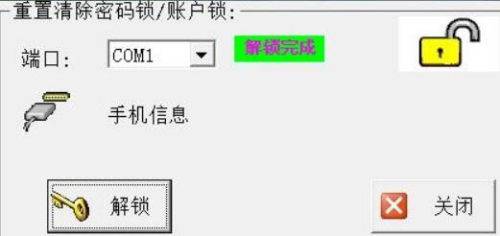 五:注重看手机上或者电脑上平台的运行此时点平台上的 解锁 按扭起头解锁耐烦等平台上的COM端口旁边!显示解锁完当作!这时就申明当作功了
