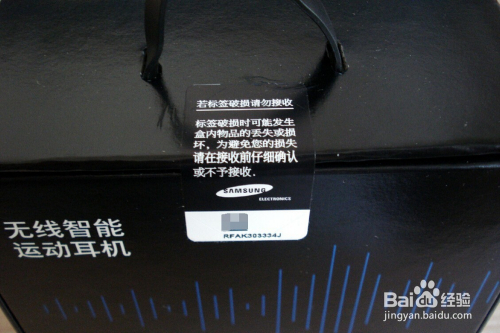 主要的是盒子的上部和下部都有密封贴,上部的是三星所有电子产物都有的口角密封贴,印有文字,还有产物的序列号。