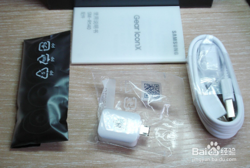 包装盒的正面有耳机的图片作为布景,上面印着白色的Gear IconX,比力美不雅并且显得有档次,在右下角用小字体标着2018,表白这是新版的。右上角是SAMSUNG商标,和三星用于验证产物的防伪贴。
