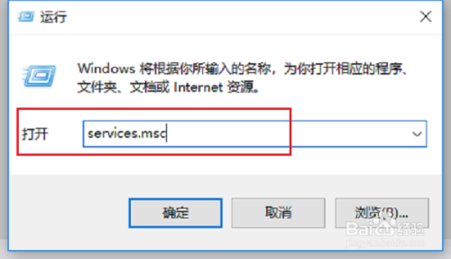 第一步按win+R键打开运行,输入“services.msc”,点击确定,如下图所示: