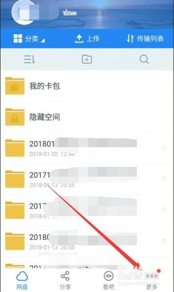 运行网盘,本家儿界面有保留的内容,是以往小我收集的相关资本,这里需要利用东西,点击右下方三点图标按钮,即更多。