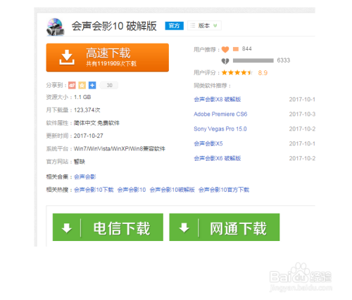 若是想下载破解版的,在搜刮页那边输入“会声会影破解版”,然后选择响应的版本点击进去——这里就可以看到这个版本是适合各类系统的,可以点击“高速下载”“电信下载”或者“网通下载”