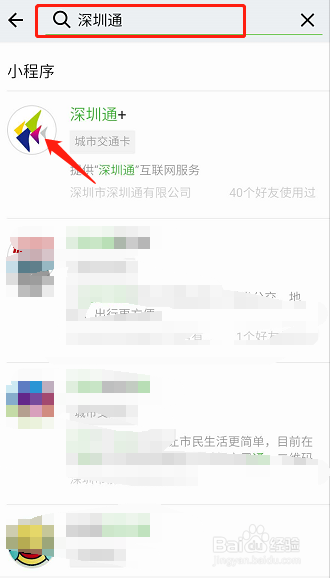 然后搜刮“深圳通”,在搜刮出来的内容中点击第一个“深圳通+”