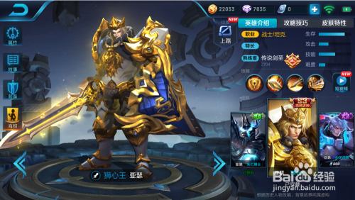 亚瑟定位兵士/坦克,即可以当兵士,又可以当坦克,属于上单英雄,拥有每2秒答复1%最年夜生命值的被动技术。其人物形象如下图所示: