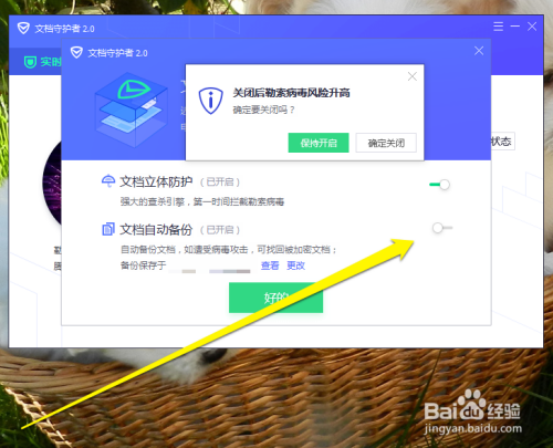开启杀毒软件,一般要开启文档庇护功能,这个功能不克不及封闭。