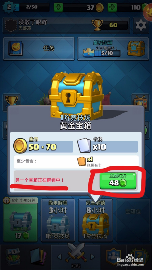 在每次只能打开一个宝箱。若是有宝箱正在打开。在此开启宝箱是需要耗损钻石才能打开!