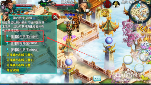 2.点击npc国内寻宝,接取使命,选择体力值起码的