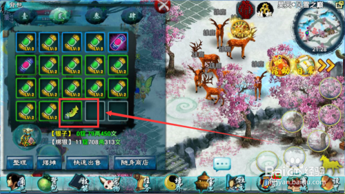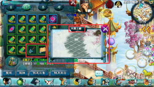 3.接到使命后。背包会有2个道具。铲子和藏宝图