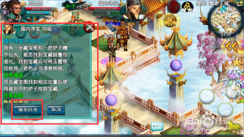 手游忘仙挖宝可以获得年夜量的经验。这个使命一天可以做2次