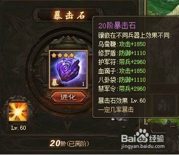 然后,3阶神石升4阶神石,每投入1个1级晶石,进度增添1%,一共需要100个1级晶石。神石进阶过程中,15级宝石打磨当作1级晶石时不需要耗损金币。