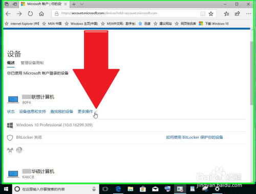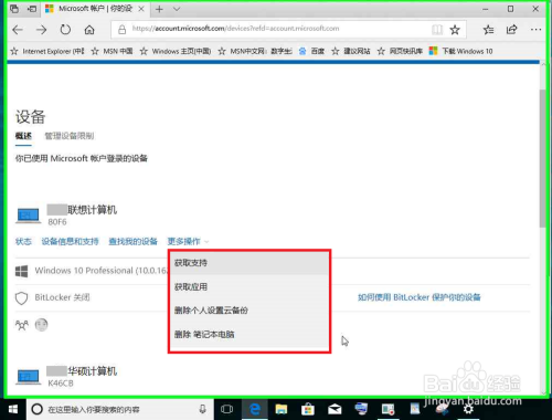 用户在"合用于 xx计较机 的更多操作 (按钮)"上左键单击(在"Microsoft 帐户 | 你的设备 - Microsoft Edge"中)。
