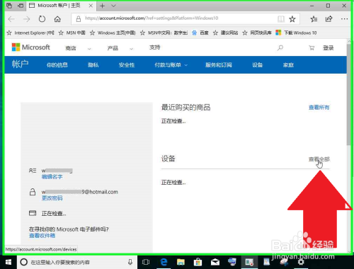 用户在"查看所有设备 (链接)"上左键单击(在"Microsoft 帐户 | 本家儿页 - Microsoft Edge"中)。