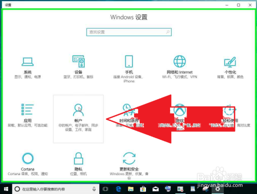 用户在"帐户 (列表项目)"上左键单击(在"设置"中)。