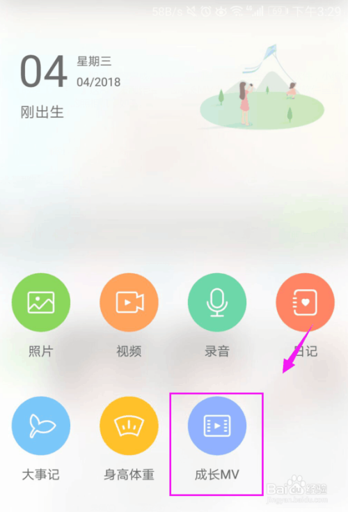我们要用我的手机建造宝宝当作长MV,我们当然需要宝宝的一条目软件,小编利用的是【亲宝宝】来建造宝宝的当作长MV,我们一路看下,在软件里面,我们点击上方的拍照机,如图。