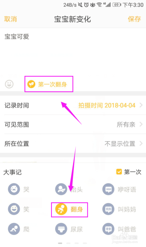 选择宝宝的第一次,是叫妈妈,仍是哭闹,如图。