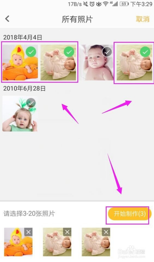 选择我们上传了的宝宝照片,接着选择【起头建造】,如图。