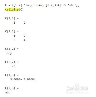 接着介绍一下关于元胞数组和布局体的显示函数别离是celldisp和disp函数的语法格局,具体如图: