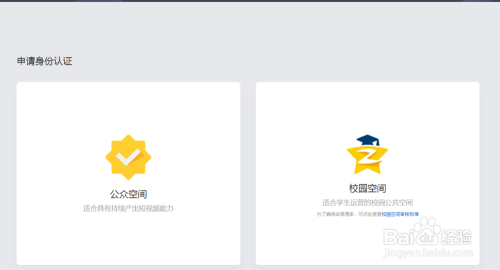 点击确定后,进入以下界面,可以看到公家空间还分为两种:自媒体类和校园类,这里我们可以按照本身需要进行选择。