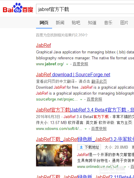 首先百度首页搜刮:jabref官方下载, 然后点击第一个选项。