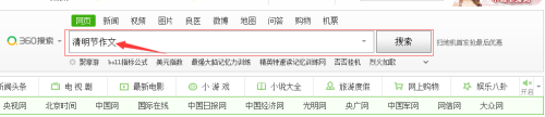 既然要查资料,我们必需首先自已要大白要查哪方面的资料,好比,我们要查关于清明节的作文,我们先打开网页,在搜刮栏打入清明节作文,点搜刮