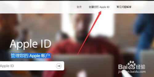 进入账户办理页面,如下图点击页面上方的建立apple id账户。