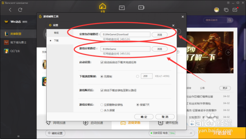 我们进入到下载速度设置页面之后,我们就会看到‘ 游戏安装包储存路径 ’设置按钮和‘ 游戏安装路径 ’设置按钮,我们可以本身设置本身想要的游戏储存位置,记住不要设置到电脑C盘哦!