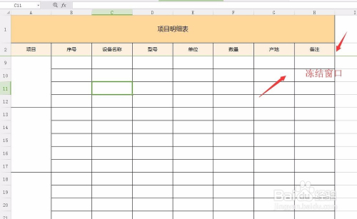 我们在里面选择明细这个样原本看一下,就会直接弹出一个明细的表格样式可以供我们利用,并且我们可以看到上面的表格是冻结的窗口