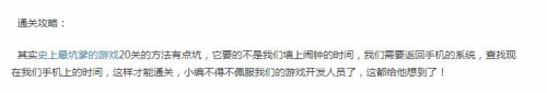 史上最坑爹的游戏是一条目比力有意思又让人头疼的一条目游戏,若是你想过响应的关卡必需要足够的机智,第二十关是一个运用现实时候的关卡,需要查询系统时候