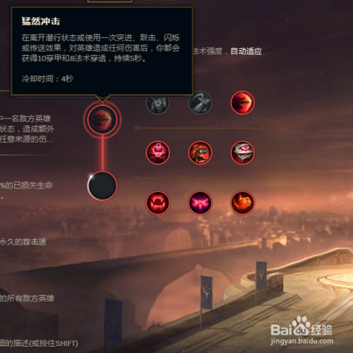 第五个符文我们选择【本家儿宰】系列里的【蓦地冲击】,利用Q技术翻腾的同时增添物理穿透,增添了Q技术的危险。