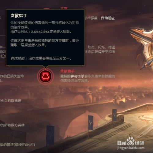 最后一个符文我们选择【贪欲猎手】,击杀仇敌增添吸血能力,满级后增添的吸血加上破败的吸血,年夜年夜增添了保存能力。