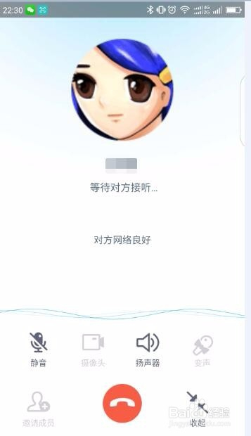 以QQ德律风为例,选择它后,倡议通话,期待对方接听;