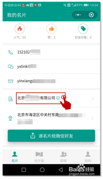 给小法式授权今后就可以起头建造本身的手刺了,按照提醒依次输入小我信息公司信息,还可以添加图片展示,小我照片、产物介绍等。信息填写完整后,一张属于本身的电子手刺就建立好了,接下来,就可以把本身的手刺发给微信老友了。